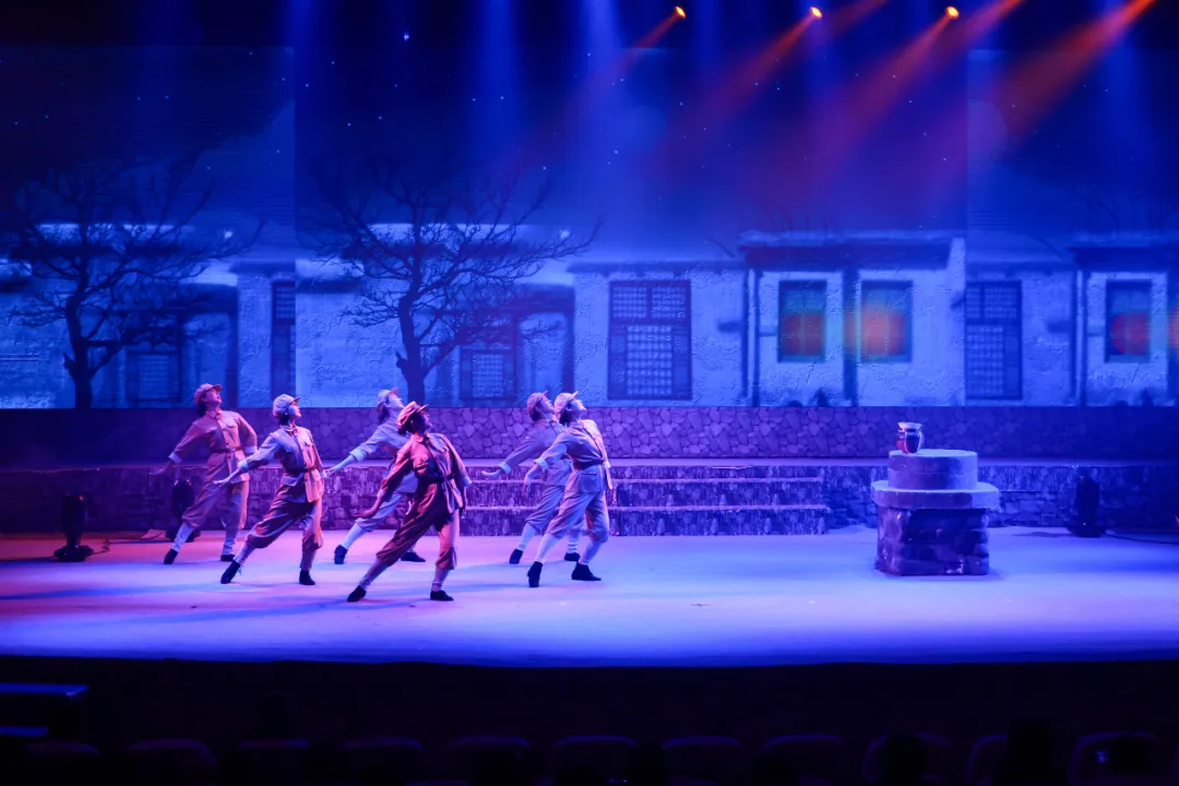 载歌载舞,激情飞扬,新老讲解员艺术团成员共同登台,深情抒发西柏坡人对革命圣地的无限热爱和深深祝福。现场掌声不断、气氛热烈,全体观众沉浸在一片温暖、祥和、喜庆、感动的氛围中。展演在《青春在圣地绽放》的歌声中落下帷幕。