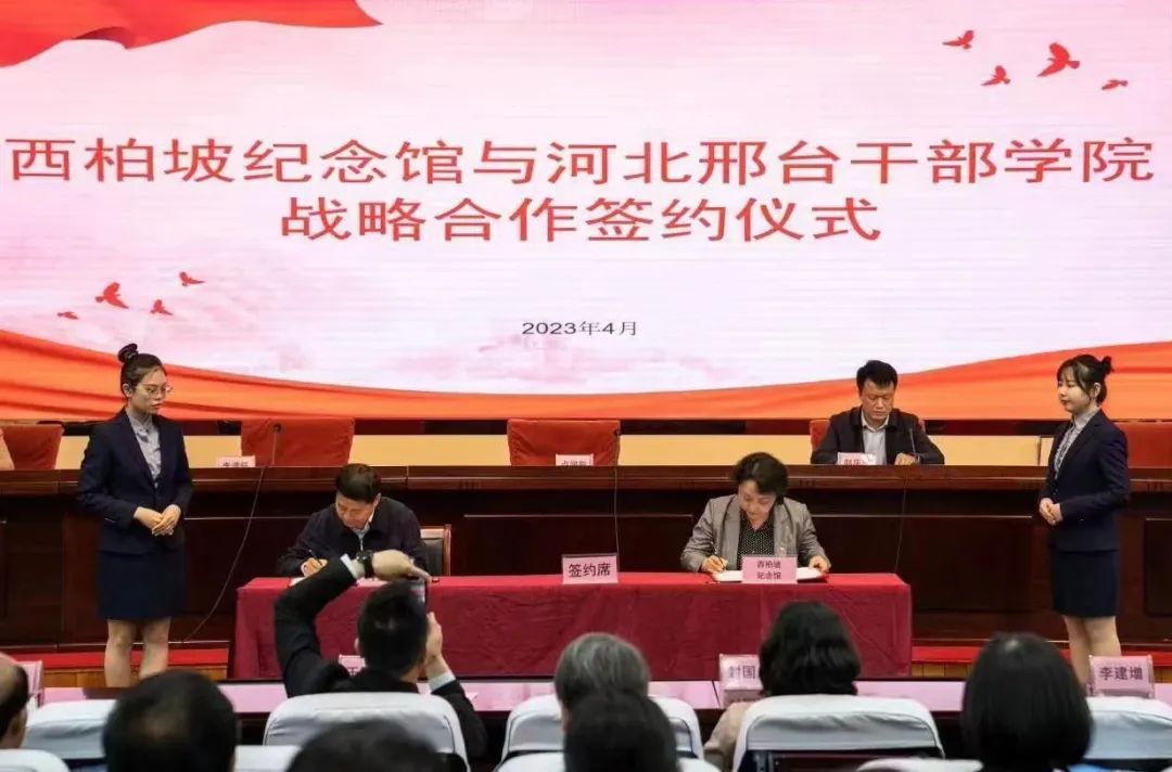 4月18日,西柏坡纪念馆馆长卢润彩带队前往河北邢台干部学院考察学习,双方签订战略合作协议。