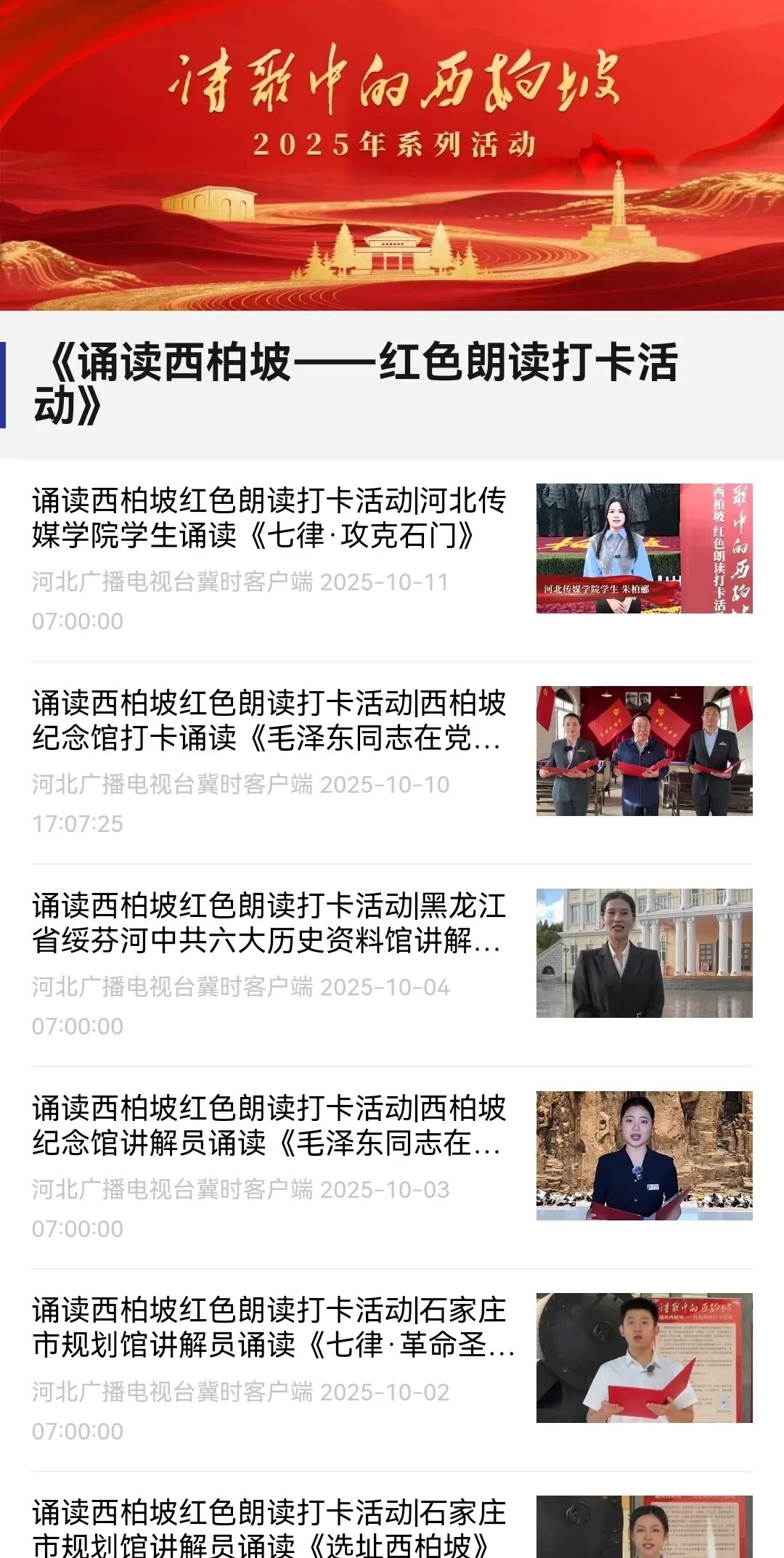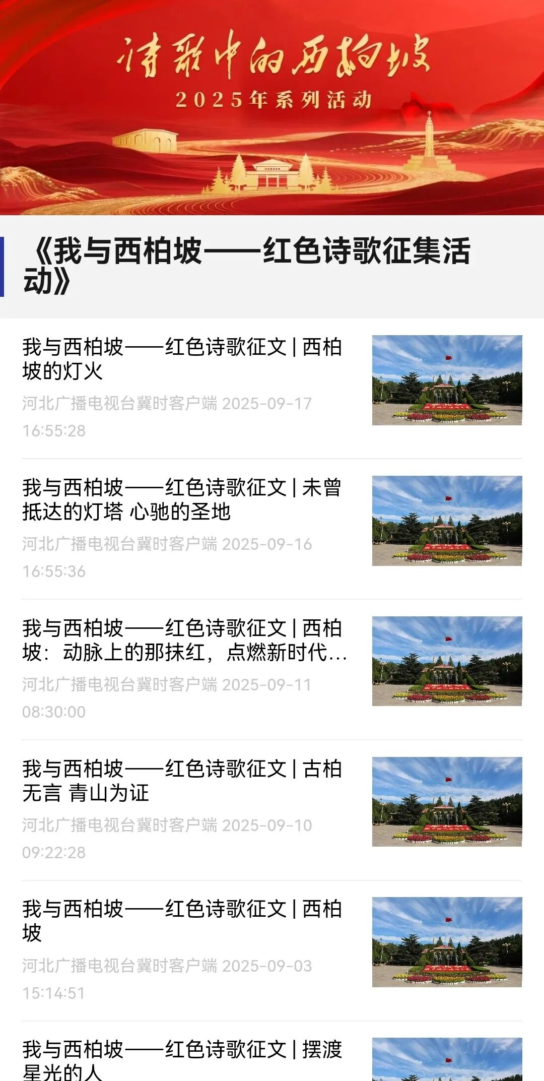 系列活动的序幕,由“我与西柏坡”红色诗歌征集活动拉开。一石激起千层浪,活动共吸引了来自全国21个省、31个市的17所学校,以及众多报社、协会、企业的热烈响应,累计收到投稿150余篇。参与者们用真挚的笔触,书写对历史的敬畏、对精神的追寻。经精心遴选,13篇优秀文章脱颖而出,在河北广播电视台冀时客户端集中推送,展现了文字背后跨越时空的情感共鸣。