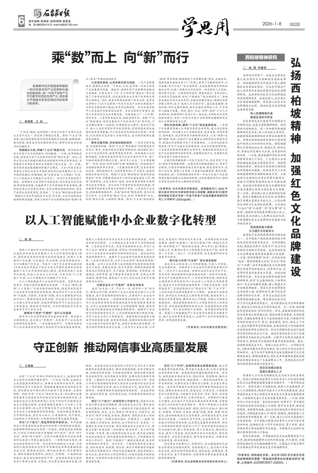 新时代新征程,只有做好红色文化品牌建设这个大文章,推动西柏坡精神与时代同频共振、代代赓续,才能持续发挥红色文化激励凝聚作用,汇聚起以中国式现代化全面推进中华民族伟大复兴的磅礴伟力。